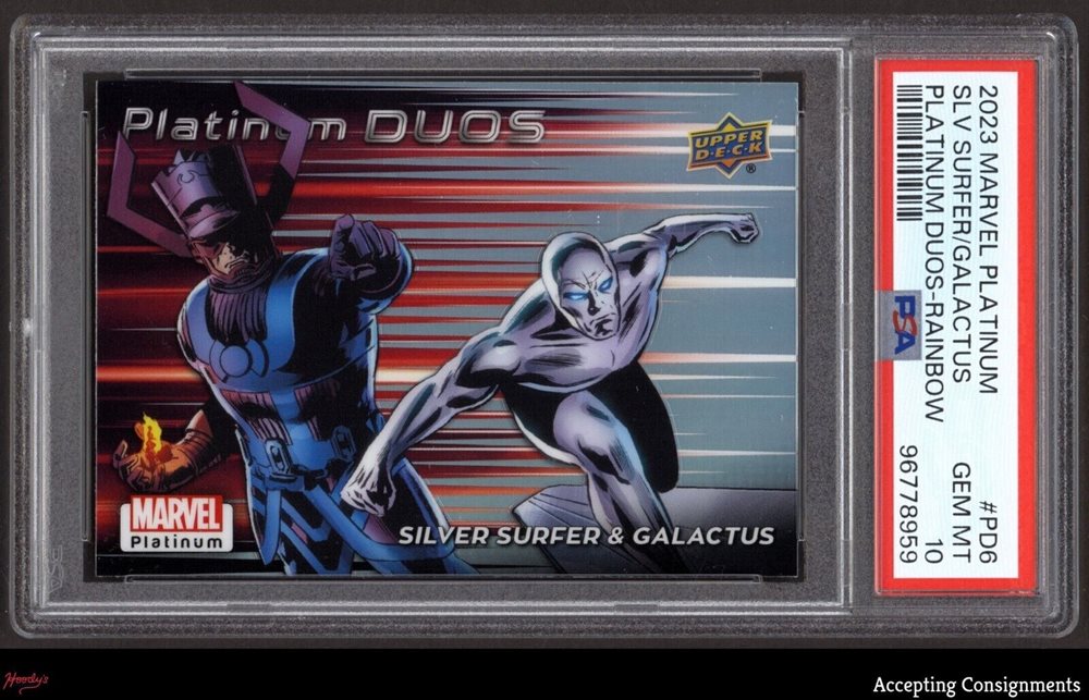 2023 UD Marvel Platinum Platinum Duo Rainbow Silver Surfer & Galactus PSA 10 GEM