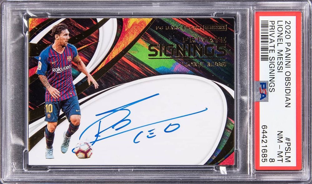 2020-21 Panini Obsidian Private Signings #PS-LM Lionel Messi Signed Card – PSA NM-MT 8