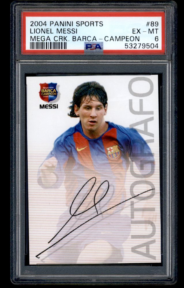 53279504 2004 Panini Sports #89 Lionel Messi Mega Barca Campeon PSA 6