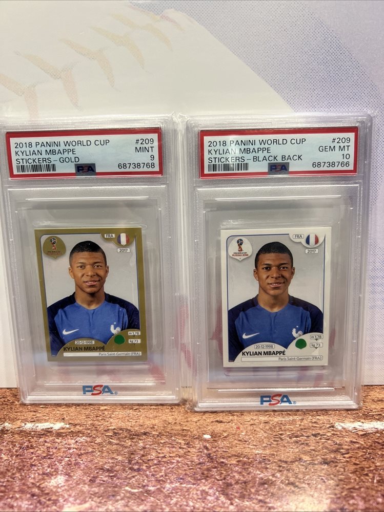 Kylian Mbappe 2018 Panini World Cup Stickers Gold & Black Back PSA Rookie RC