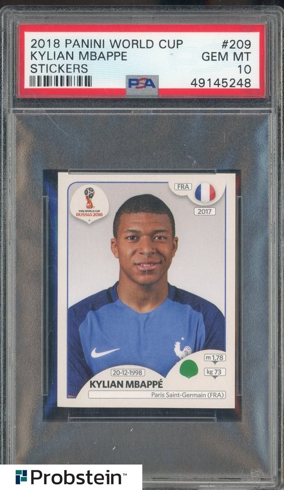 2018 Panini World Cup Stickers Soccer #209 Kylian Mbappe RC Rookie PSA 10