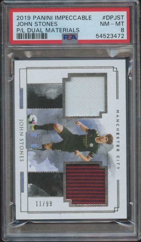 Auction Prices Realized Soccer Cards 2019 PANINI IMPECCABLE PREMIER LEAGUE DUAL MATERIALS John Stones