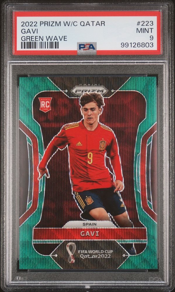 2022 PANINI PRIZM WORLD CUP QATAR GREEN WAVE #223 GAVI ROOKIE RC PSA 9