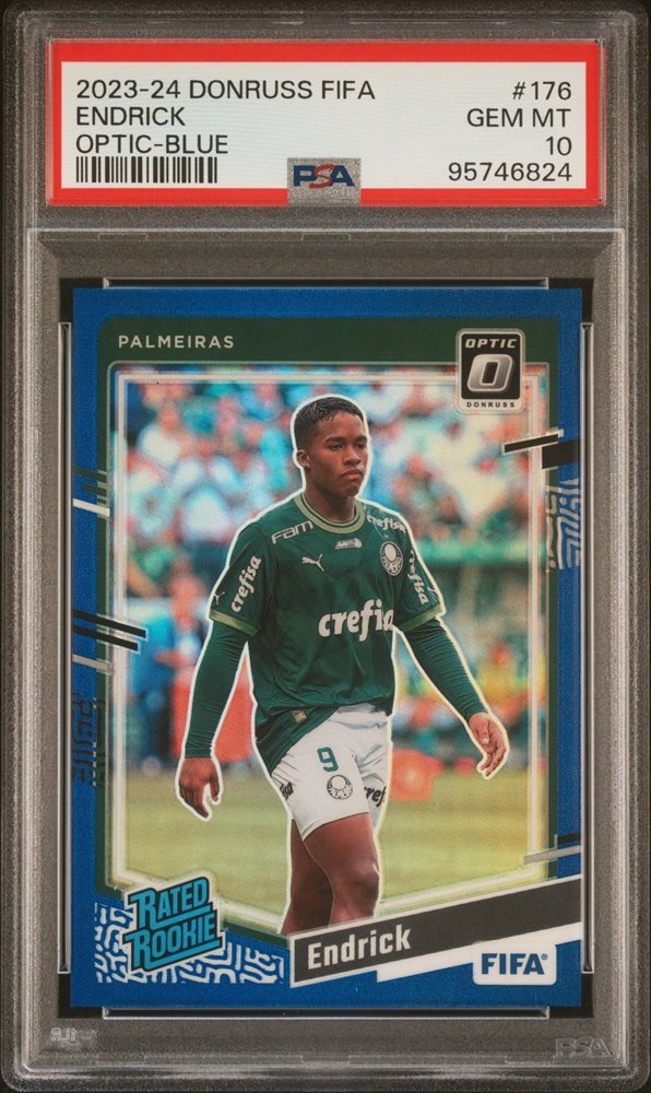 2023-24 PANINI DONRUSS FIFA OPTIC BLUE #176 ENDRICK JERSEY NUMBER RC 9/99 PSA 10