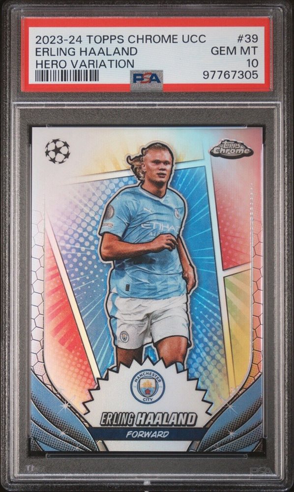 2023-24 Topps Chrome UEFA Erling Haaland #39 Hero Variation PSA 10 SP SSP Gem MT