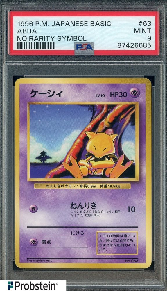 1996 Pokemon Base Set Japanese No Rarity Symbol #063 Abra PSA 9 MINT