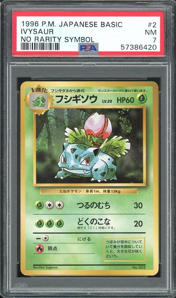 1996 Japanese Pokemon Base Set Ivysaur NO RARITY SYMBOL #2 PSA 7 NM