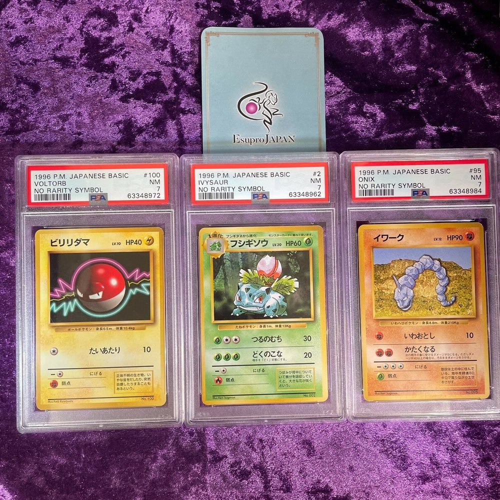Set of 3 PSA 7 NO RARITY SYMBOL IVYSAUR VOLTORB ONIX POKEMON JAPANESE BASIC 1996
