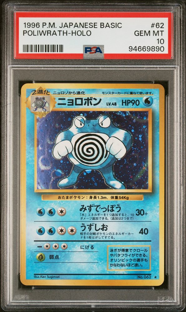 1996 POKEMON BASE SET JAPANESE #62 POLIWRATH-HOLO PSA 10
