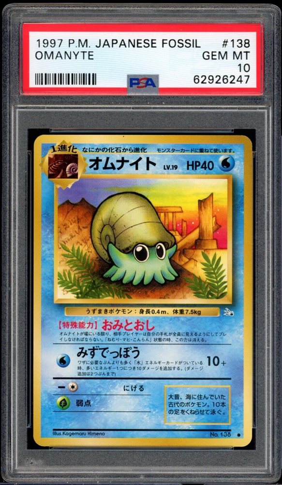 Pokemon Omanyte Fossil Japanese #138 PSA 10 Gem Mint -247