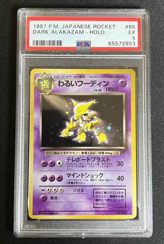 1997 POKEMON JAPANESE ROCKET #65 DARK ALAKAZAM - HOLO PSA 5 REGRADE