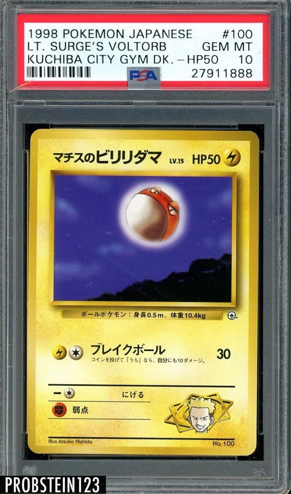 1998 Pokemon Japanese Kuchiba City Gym Deck HP50 #100 Lt Surge's Voltorb PSA 10