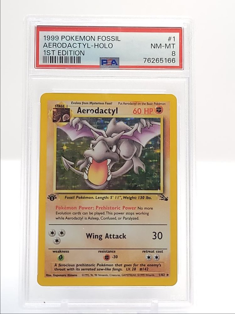 AERODACTYL 1999 POKEMON 1ST EDITION FOSSIL HOLO RARE 1/62 PSA 8 Q0907