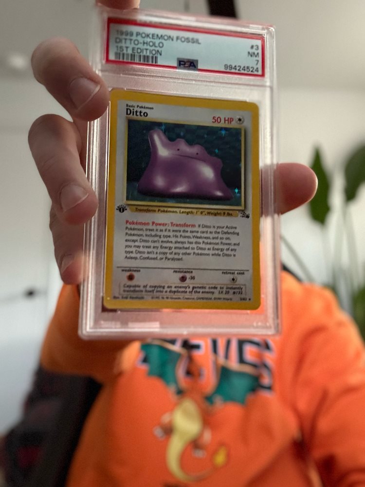 1999 POKEMON FOSSIL 3 DITTO-HOLO 1ST EDITION PSA 7