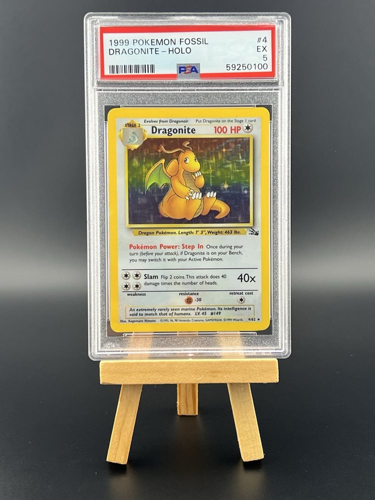 PSA 5 EX Graded Pokemon 1999 Dragonite Holo 4/62 WOTC Fossil Unlimited