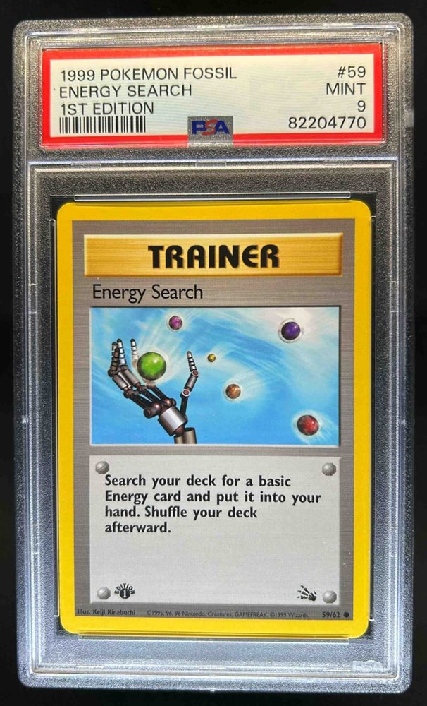 1999 Pokemon Fossil 1st Edition Energy Search #59/62 PSA 9