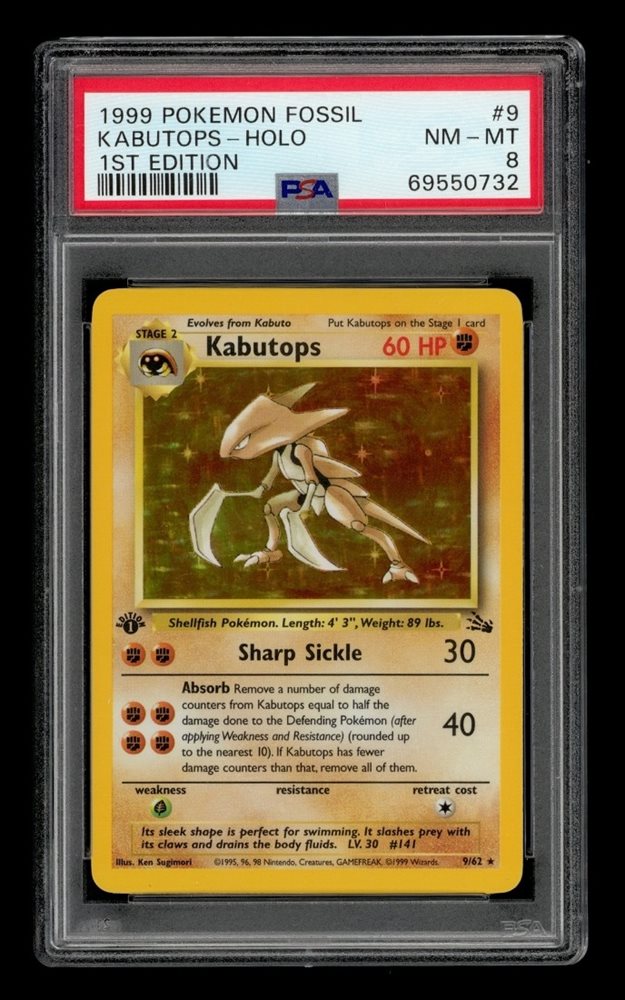 1999 Pokemon Fossil 1st Edition: # 9 Kabutops-Holo PSA 8 NM-MT