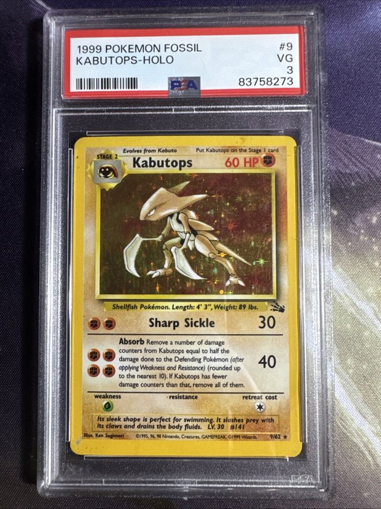 1999 POKEMON FOSSIL 9/62 KABUTOPS-HOLO PSA 3