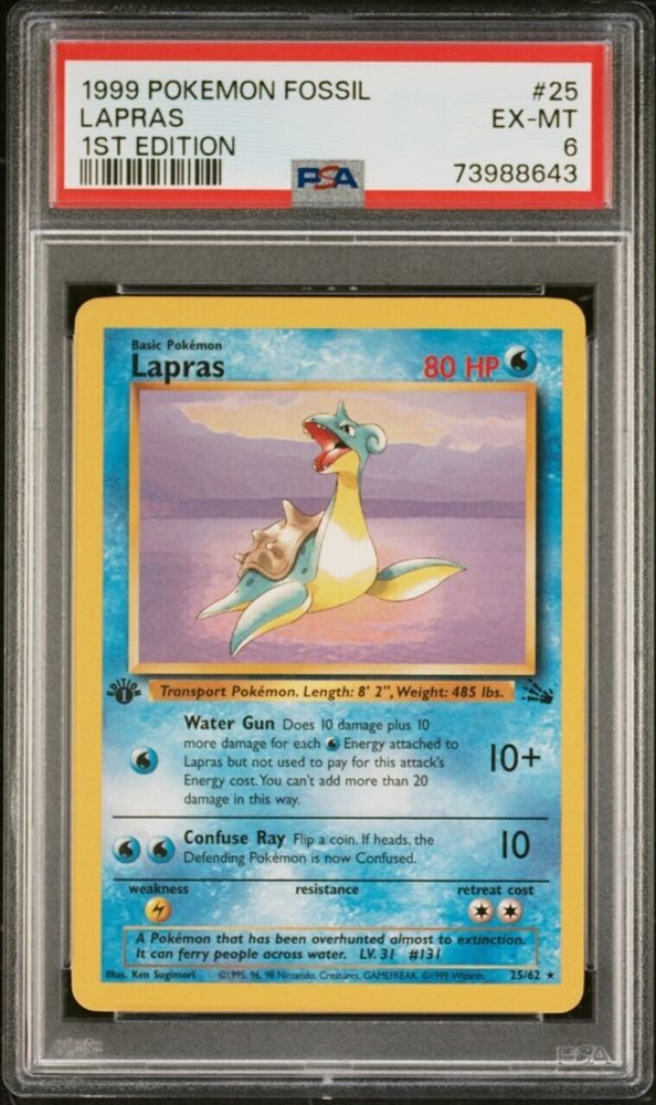 PSA 6: Lapras, Fossil, 25/62, 1st Ed., Non-Holo