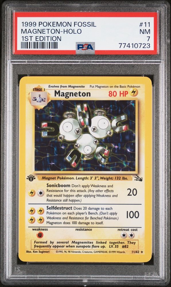 1999 WOTC POKEMON FOSSIL 1ST EDITION MAGNETON 11/62 HOLO RARE FOIL PSA 7 NM