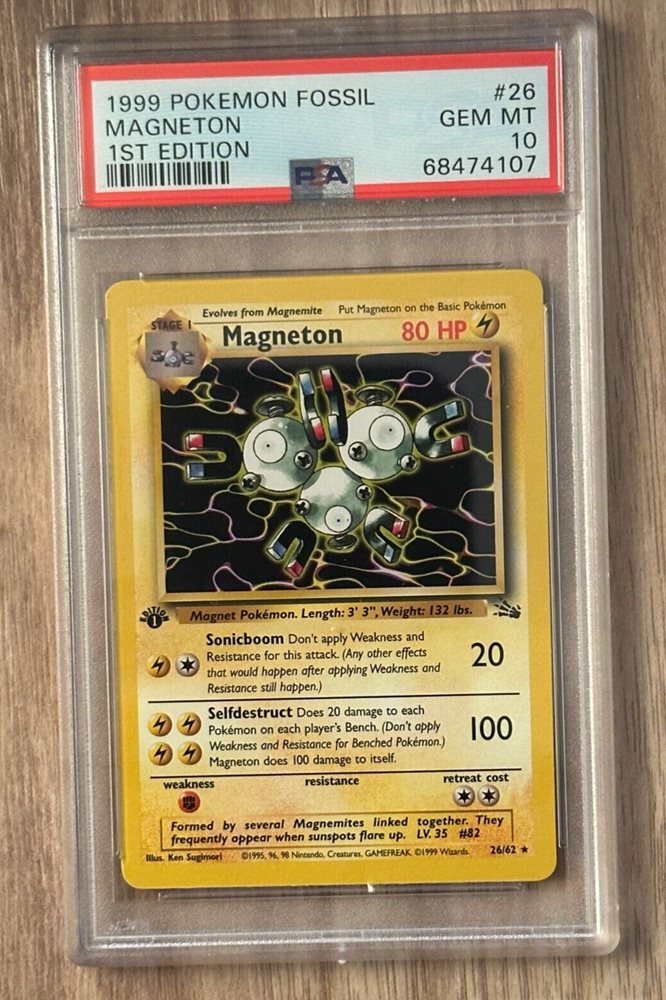 Pokemon Fossil 1st Edition Magneton NON HOLO PSA 10 Certification # 68474107