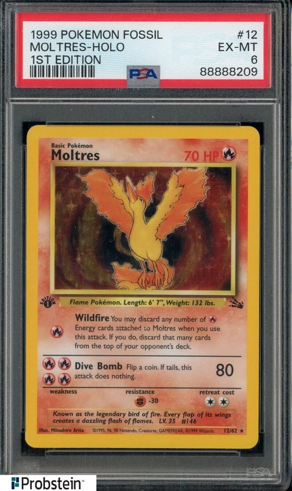1999 Pokemon Fossil 1st Edition Moltres Holo #12 PSA 6 EX-MT
