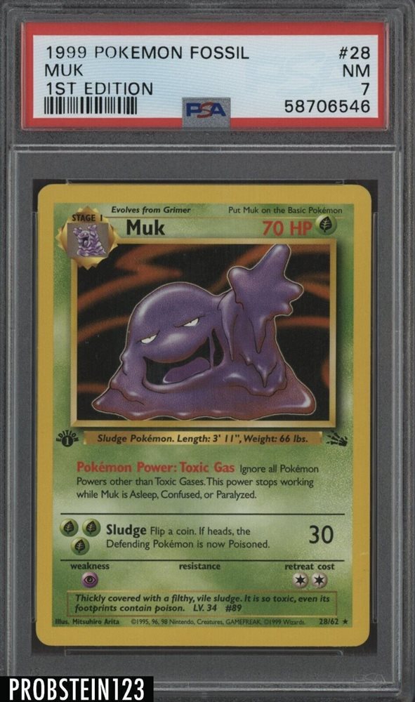 1999 Pokemon Fossil 1st Edition #28 Muk PSA 7 NM