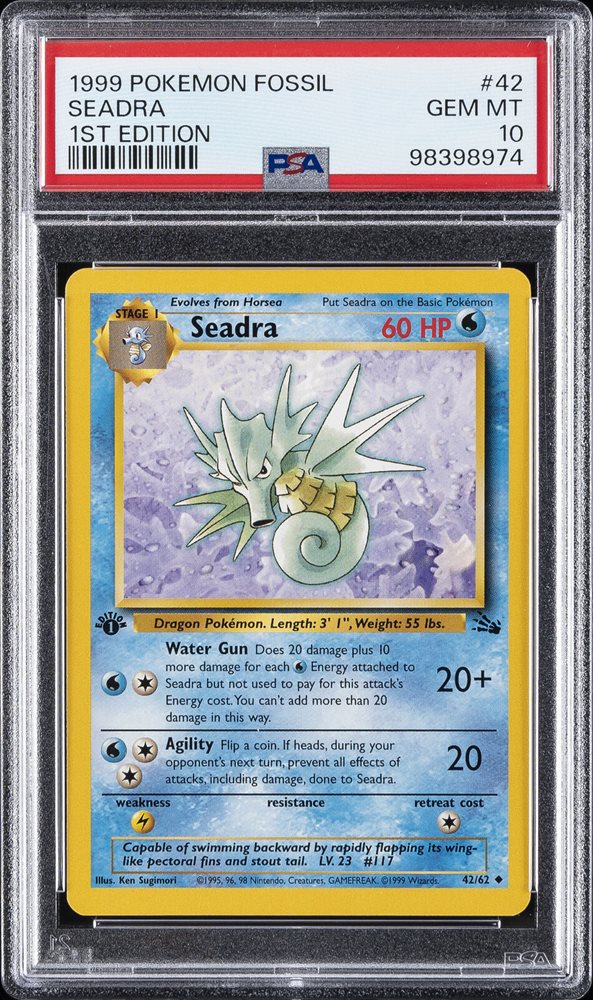 1999 POKEMON FOSSIL 1ST EDITION #42 SEADRA PSA 10
