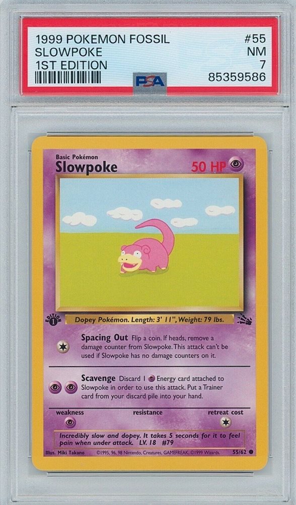 1999 SLOWPOKE Pokemon Fossil #55 1st Edition PSA Grade: NM 7