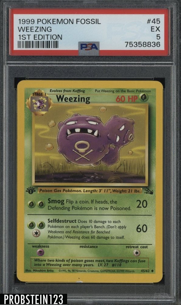 1999 Pokemon Fossil 1st Edition #45 Weezing PSA 5 EX