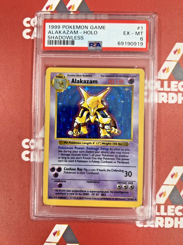 ALAKAZAM | 1/102 | PSA 6 | BASE SET HOLO SHADOWLESS 1999 | G20