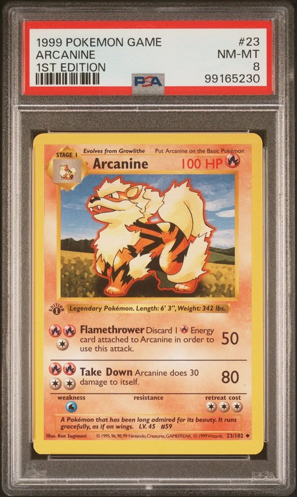 1999 POKEMON BASE SET 1ST EDITION #23 ARCANINE PSA 8