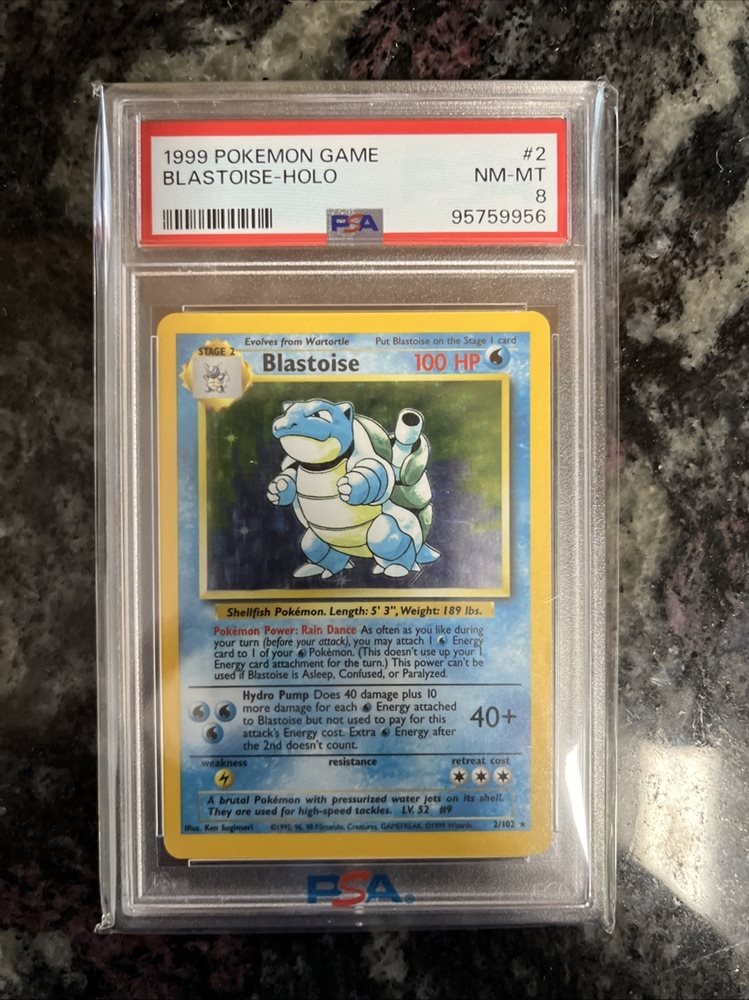 Pokemon 1999 Base Set Unlimited Blastoise Holo Rare Card #2 PSA 8 Near Mint
