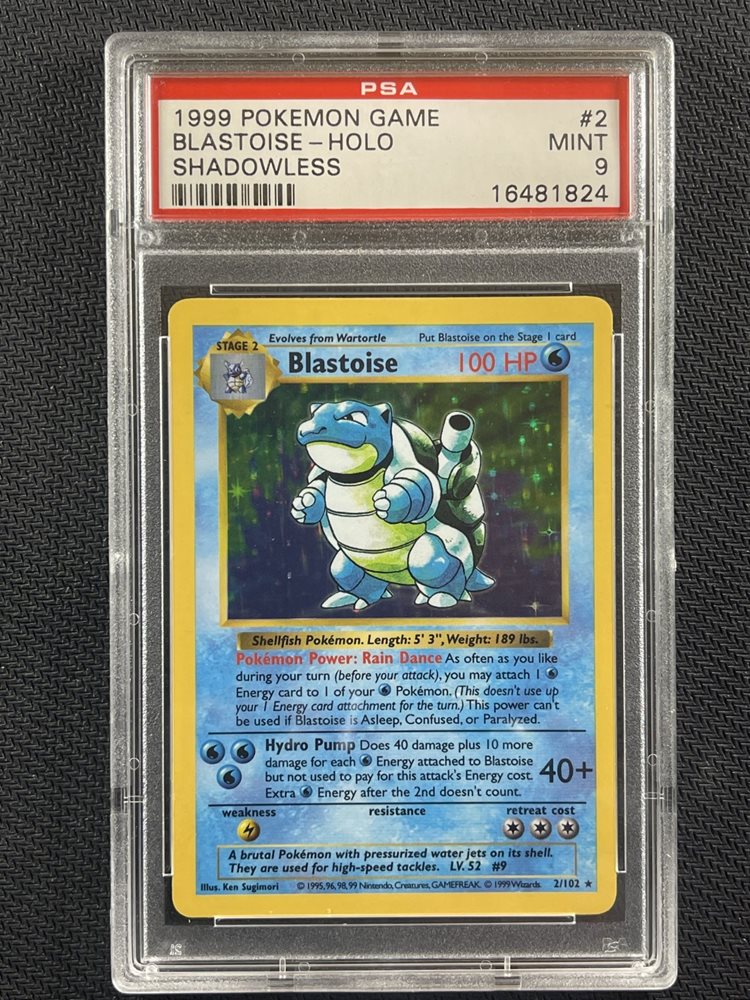 Pokémon Cards PSA 9 Mint Blastoise Shadowless Holo Base Set WotC 1999 2/102