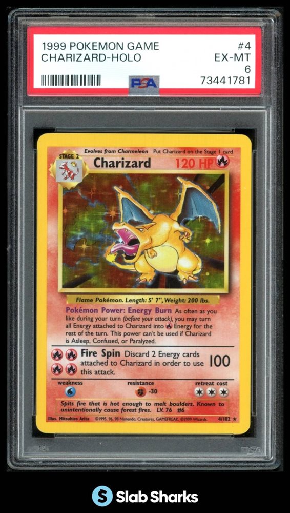 1999 POKEMON BASE SET UNLIMITED #4/102 CHARIZARD RARE HOLO PSA 6
