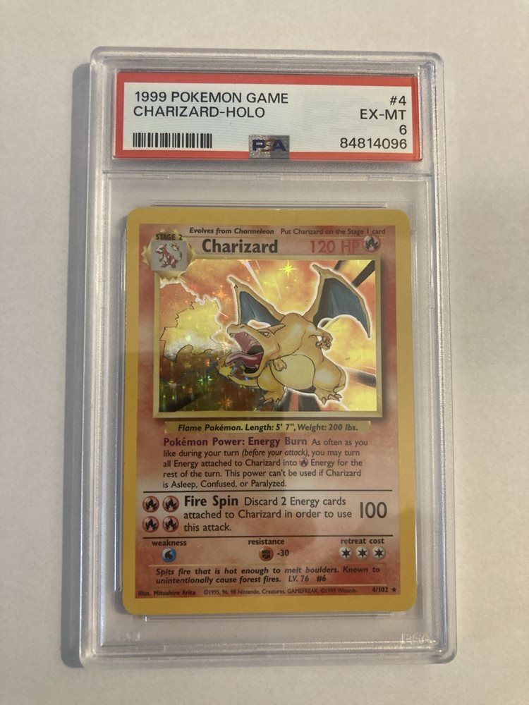 PSA 6 1999 Pokémon Charizard Base Set Unlimited Holo 4/102