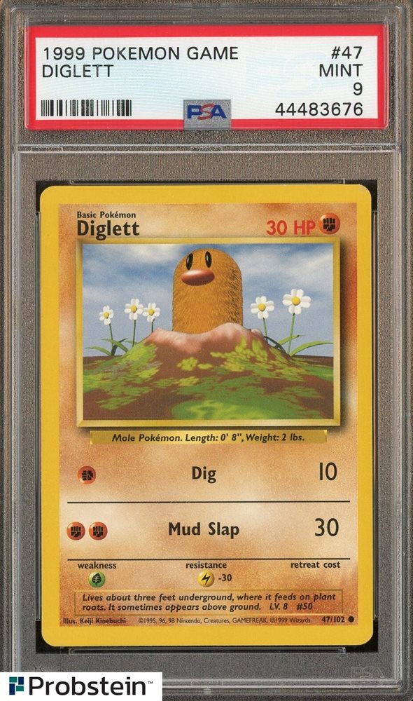 PSA 9 MINT FIGHTING SYMBOL ERROR Diglett #47 Base Set Unlimited Pokemon Card
