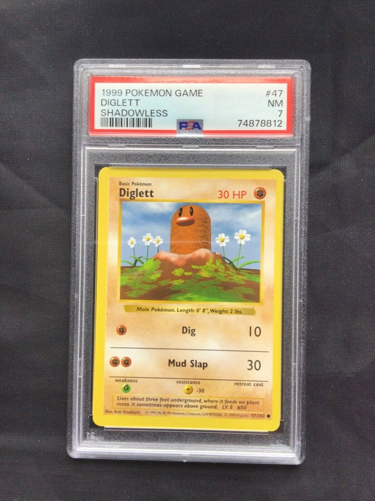 Pokemon Cards: Base Set Shadowless Common: Diglett 47/102 PSA 7