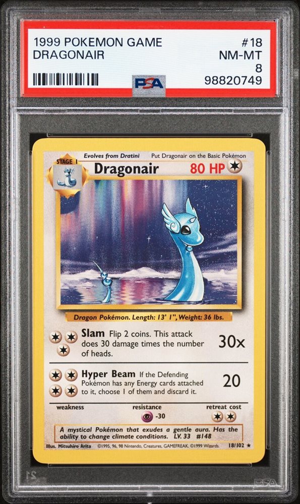 1999 POKEMON BASE SET UNLIMITED #18 DRAGONAIR PSA 8