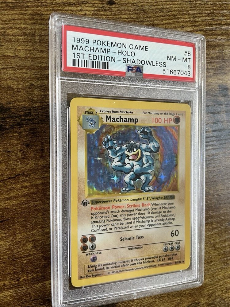 Pokemon Card Machamp 8/102 Holo 1st Edition Shadowless 1999 Base Set PSA 8 NM-MT