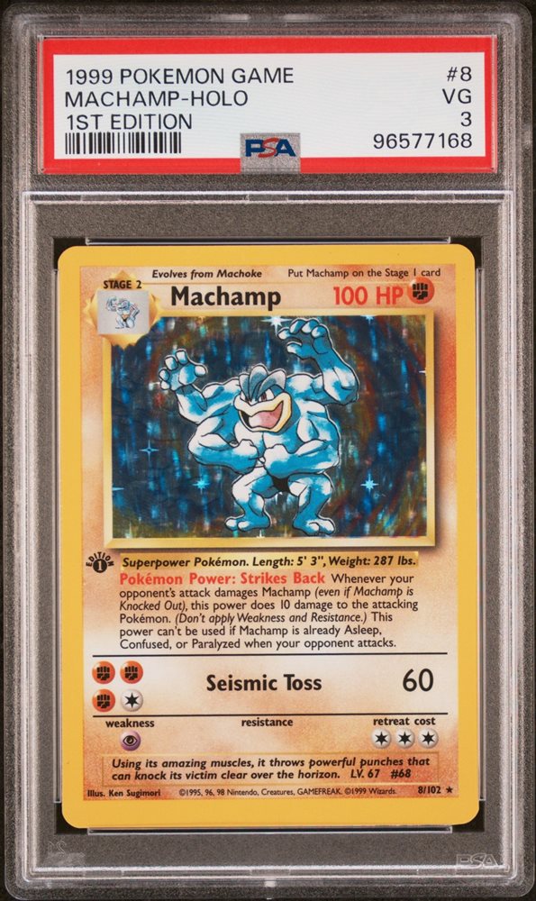 1999 POKEMON BASE SET 1ST EDITION #8 MACHAMP-HOLO PSA 3