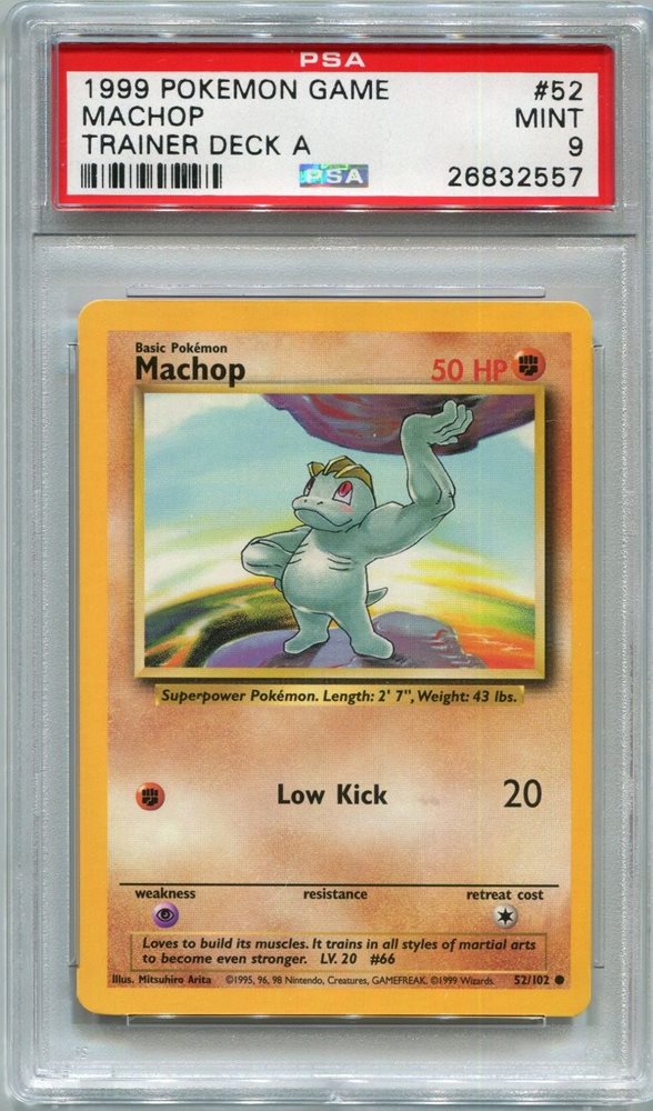 Pokemon Card Brock's Trainer Deck A Machop Base Set 52/102, PSA 9 Mint