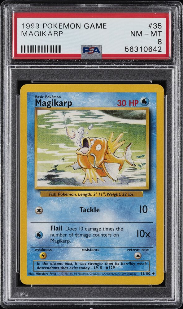 1999 POKEMON BASE SET UNLIMITED #35 MAGIKARP PSA 8