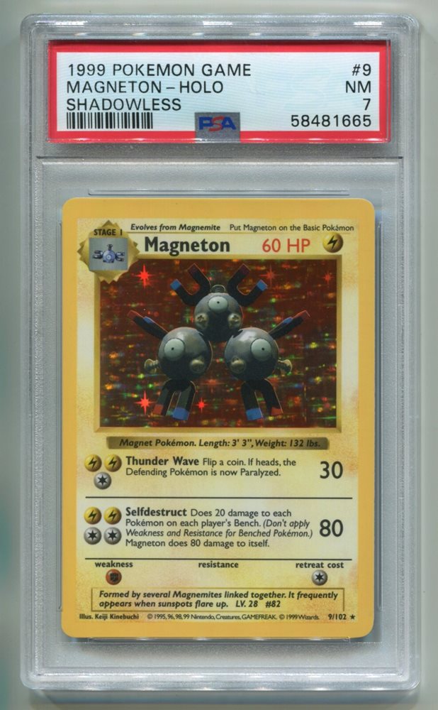1999 WOTC POKEMON BASE SET UNLIMITED SHADOWLESS MAGNETON 9/102 HOLO RARE PSA 7