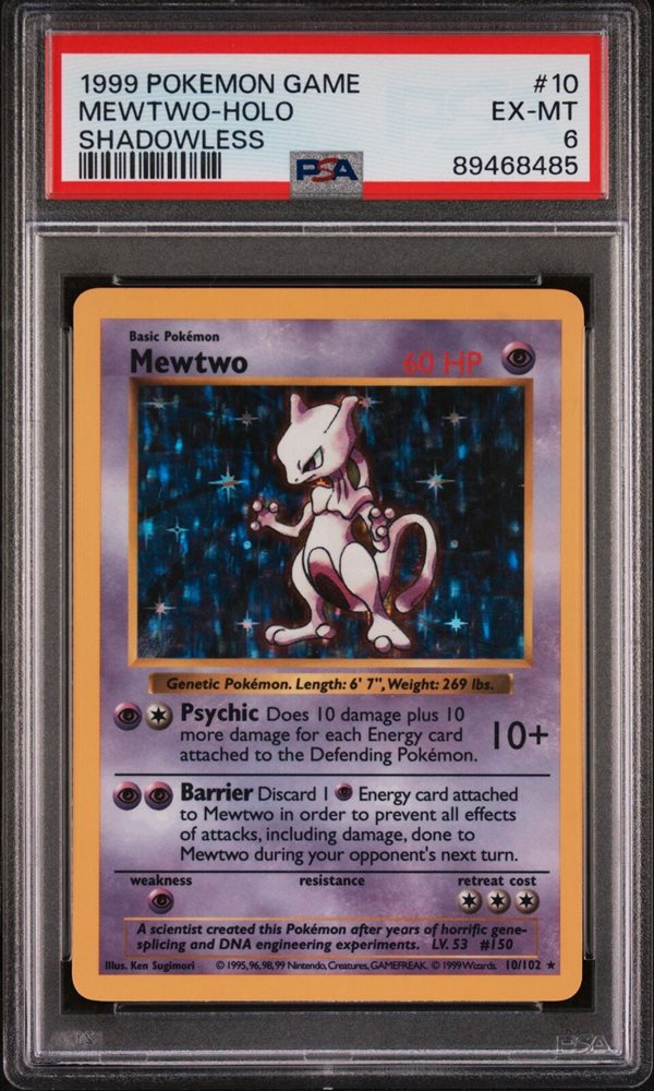 1999 POKEMON BASE SET SHADOWLESS HOLO #10 MEWTWO PSA 6