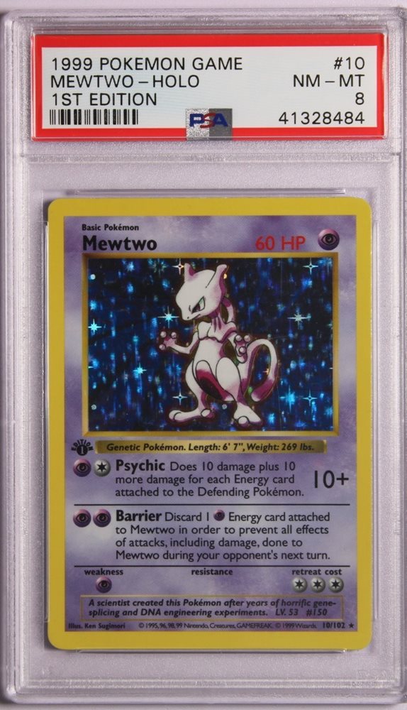 1999 POKEMON BASE SET 1ST EDITION SHADOWLESS #10 MEWTWO HOLO PSA 8