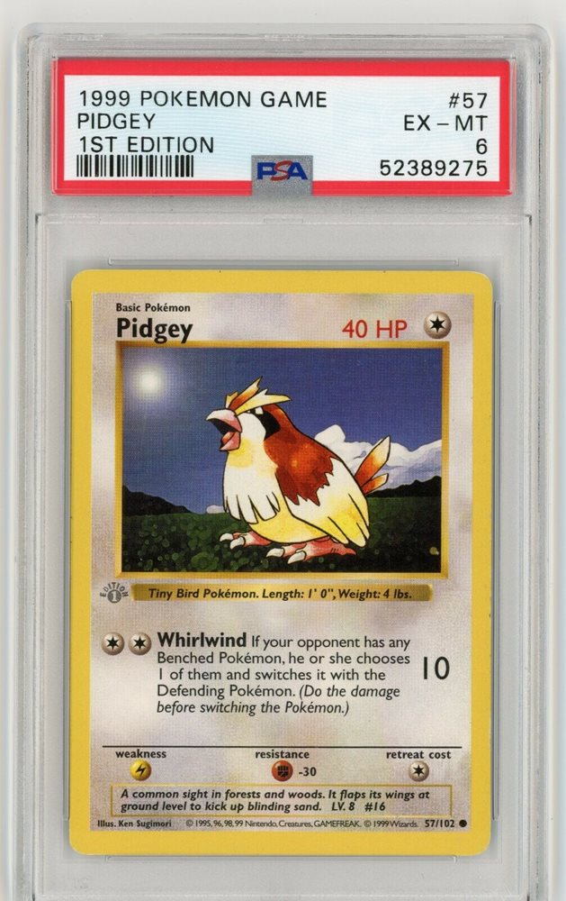 PSA 6 Pidgey 57/102 1ST EDITION Base Set Pokemon Card Grey Stamp