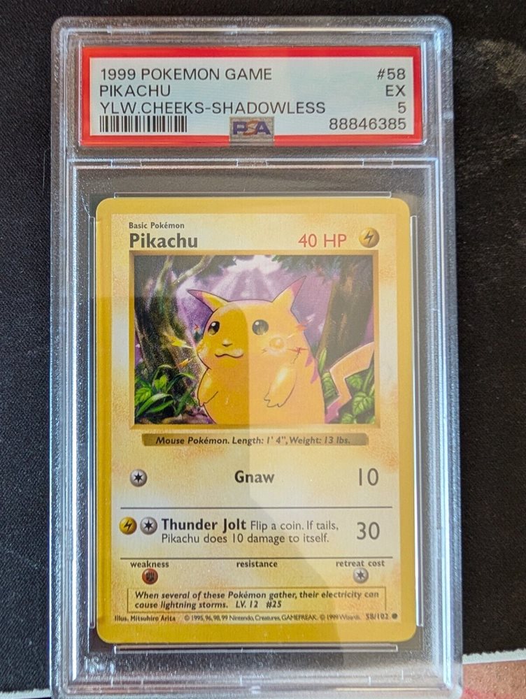1999 Pokemon Game Pikachu Yellow Cheeks- Shadowless #58 PSA 5
