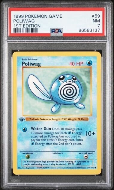 Pokemon 1999 Poliwag Shadowless #59 Graded PSA 7 NM 1st Edition Trading Card