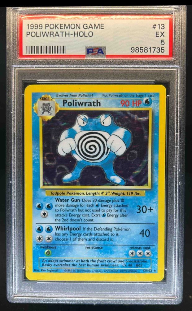 1999 Pokemon Set Unlimited Poliwrath Rare Holo #13/102 PSA 5